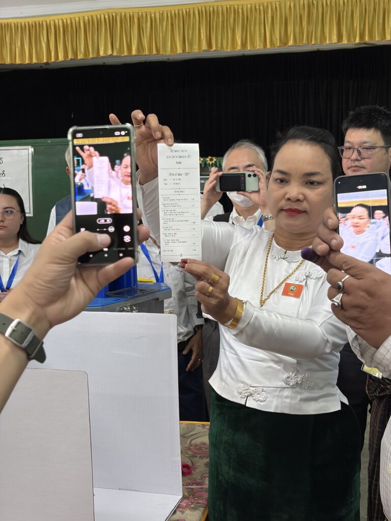 今回の総選挙では、投票方法として電子投票機(Myanmar Electronic Voting Machine、MEVM)が導入された。UECの説明によると、MEVMはインターネットや無線通信機能を持たないスタンドアロン型の機器であり、USBポートなど外部接続機能も備えていない。改ざん防止を目的とした構造で、無効票の発生を抑制し、集計作業の迅速化を図る狙いがあるとされる。また、盲学校のある地域については、点字対応機能が搭載された機器を使うことで、視覚障害者への配慮も行われた。